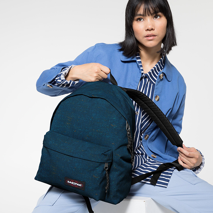 Mochila Eastpak acolchoada Pak'R. Feita de poliamida resistente com grande compartimento principal fechado com zíper, confortável acolchoado nas costas, bolso frontal fechado por zíper.