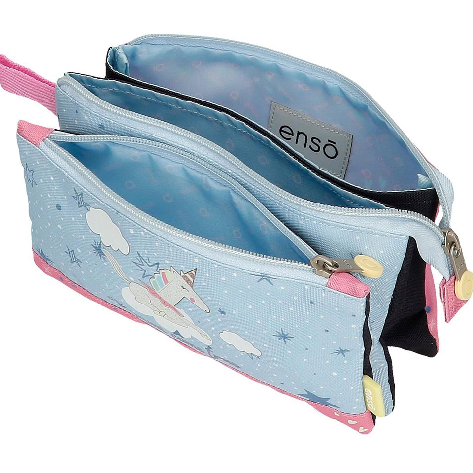 Estojo triplo Ensó com 2 fechos.