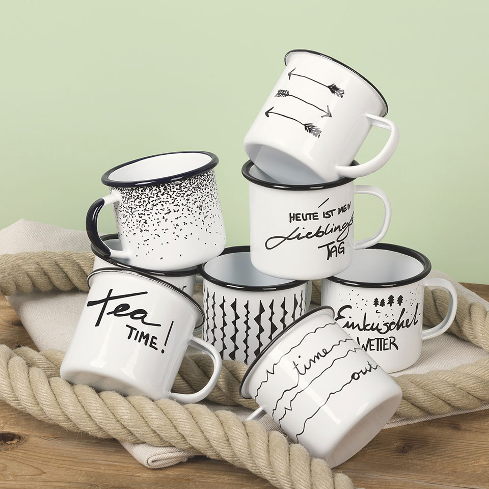 Cria os teus designs originais e em três simples passos terás a tua nova caneca favorita! Inclui uma caneca e um marcador preto para porcelana/vidro. Caneca em esmalte, metal insípido e inodoro, resistente a cortes e arranhões à prova de forno.