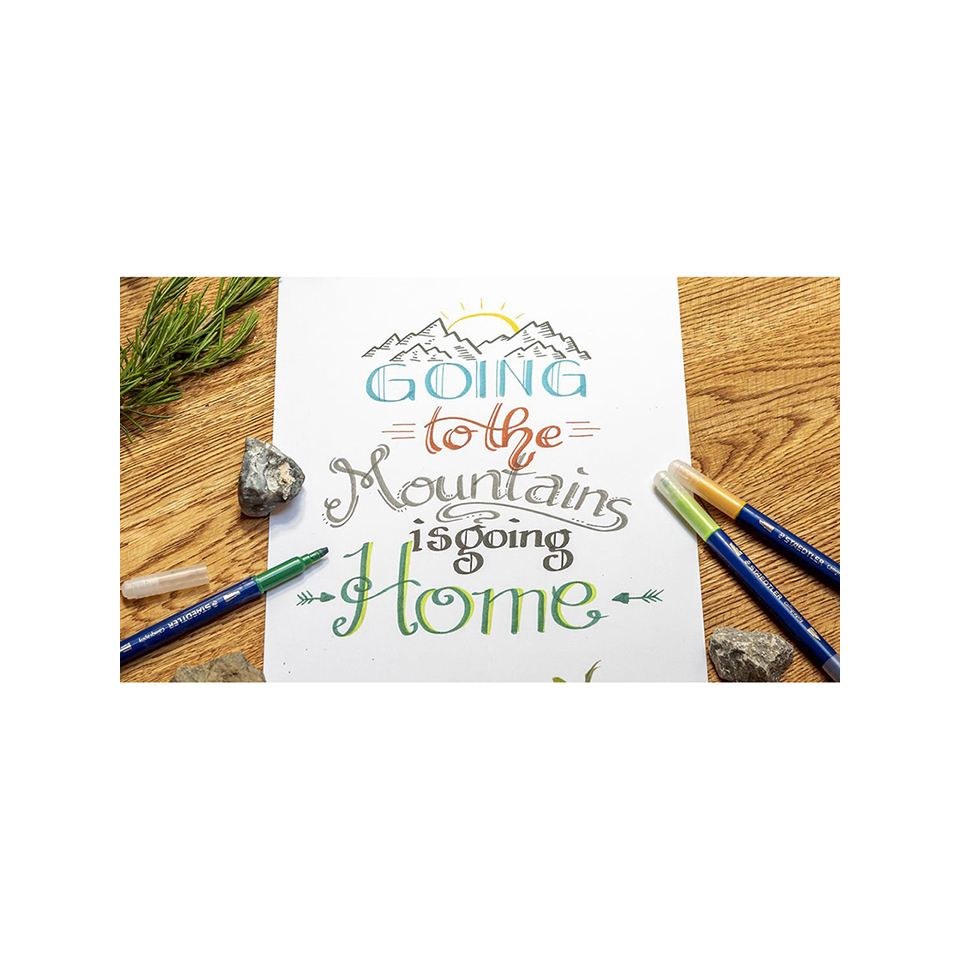 Canetas de caligrafia de ponta dupla de fibra oferecem opções para letras escritas à mão com detalhes finos e opções de registo para o estilo de escrita decorativo de caligrafia. Estas canetas são perfeitas para registo no diário, scrapbooking, lettering e coloração. O conjunto de 12 cores sortidas.